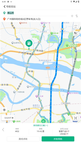 1、导航找站地图查找+路线导航,多路径推荐更省气