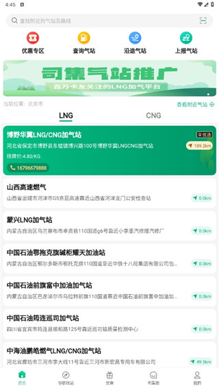 1、在软件的首页中可以查看到附近加气站加油站的位置信息