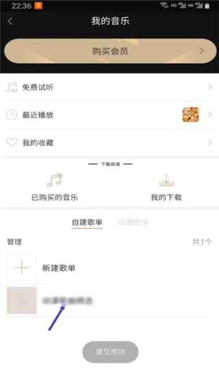 4、这样就可以看到歌单创建好了,将喜欢的音乐添加进去就可以了