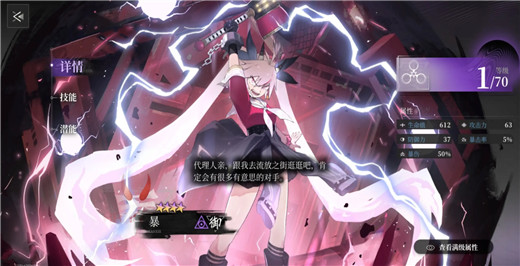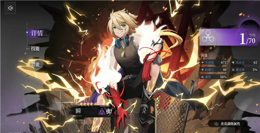 输出/辅助型,雷队核心,能上双爆debuff,能减防,目标被攻击时可以对所以其他敌方打一次还算不错的伤害,