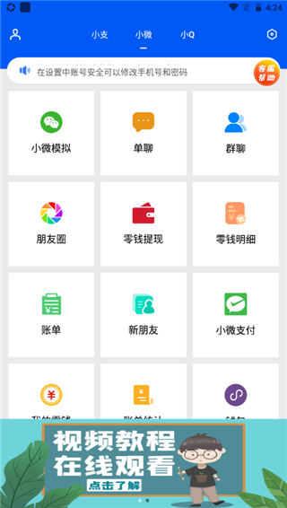 在刷圈兔微信模拟器中还有着账号的设定,支持多种方式登录,微信、手机、密码等,不然不登录账号是无法进行使用的,而且对于首次使用该软件的用户也不用担心不会用,这里面有着视频教程可供大家在线学习,让你能轻松的掌握软件的使用方法,如果你有需求的话,千万别错过了。