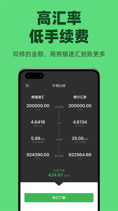 此外在熊猫速汇app中还采用了银行级别的安全技术,用户不用担心财产丢失等问题,你还能实时跟踪汇款的情况,轻松实现即转即用,同时该软件还支持留学缴费,毕竟出国留学缴费的时候比较麻烦,用户只需使用应用的缴费功能就能轻松缴费了,绝对可以满足大家的汇款需求。