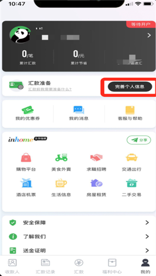 6、熊猫速汇app提供需要的汇款交易账户来进行汇款,实现个人对个人的汇款;