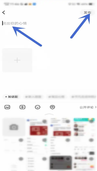 3、这里就可以编辑动态的内容了,首先就是文字输入,最后就是图片的添加和话题了