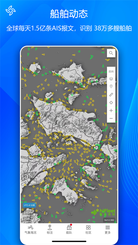 此外在船队在线app中还提供了非常专业的交通热图,为大家展示了多比例图,你还能通过标注位置的方式来知道离目的地有多远,同时软件中还内置了社区板块,这里汇聚了许多船长交流海上的航行经验,用户可以随时与它们交流,让大家可以更加安全的在大海上航行。