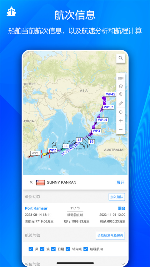 1、支持用户根据需求调整功能,如筛选特定区域的船舶或定制专属航线规划。2、结合岸基AIS、卫星AIS以及海洋气象数据,为用户提供全面的航运信息支持。