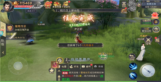 4、完成任务后可以获得经验、元宝等奖励
