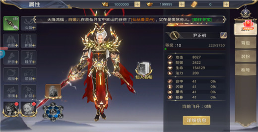 5、在角色面板中,可以看到角色的各项属性,还可以给角色穿戴装备