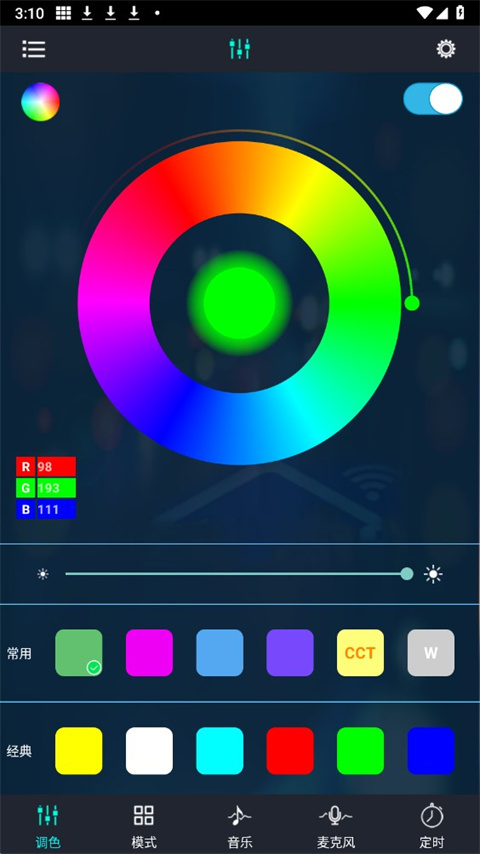 1、软件的首页可以调整幻彩灯的颜色,用户能自由挑选