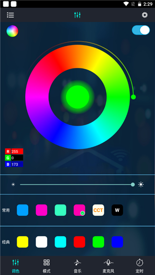1、这款软件还支持单灯控制、多灯控制以及组灯控制,让您能够根据不同场景需求,自由调节灯光。2、可以通过手机蓝牙或Wi-Fi,您可以轻松控制LED灯光的颜色、亮度和变化模式,实现智能照明体验。