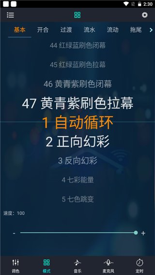 1、模式切换各种有趣的led灯控制模式都有,覆盖了正向幻彩,自动循环等。