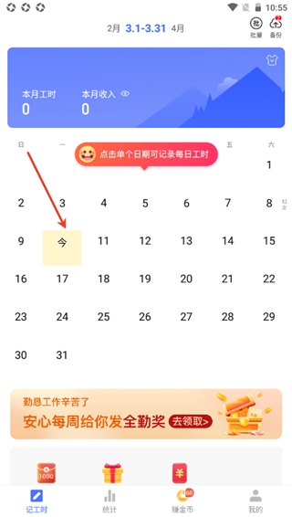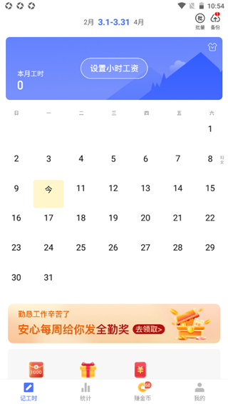 在小时工记账app中除了工资的计算之外,这里面还内置了红包免费领功能,用户可以通过邀请好友的方式获得红包,边记工时还能边赚零花钱,同时软件中还有着签到赚金币的福利,用户还能拿赚到的金币兑换各种小商品哦。