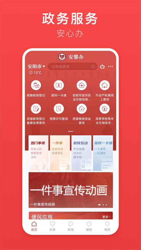安馨办app官方版是一款安阳百姓必备的生活服务应用,是安阳市行政便民服务中心为当地群众打造的,在这里你可以缴纳各种生活费用,如燃气费、水电费、有线电视飞等,再也不用去线下网点排队等候缴费了非常的方便。此外,安馨办app中还有许多的个人办事功能,其中有就业创业、出境入境、消费维权、户籍办理等,无论你要办理什么个人事物都可以使用它轻松完成。如果你是安阳当地百姓的话,那么这款软件将是你生活中得力的助手。