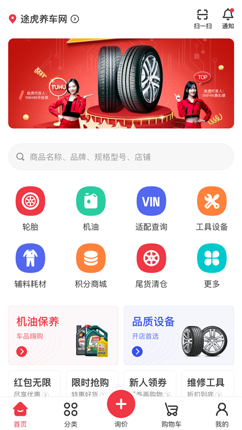 4、为用户提供轮胎版块,在这里用户可以快速的购买各种型号的轮胎;