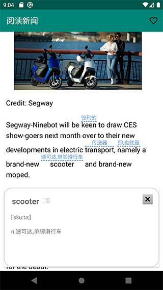 4、这款软件会标注一些你不认识的词汇,详细的释义都直接显示出来哦。