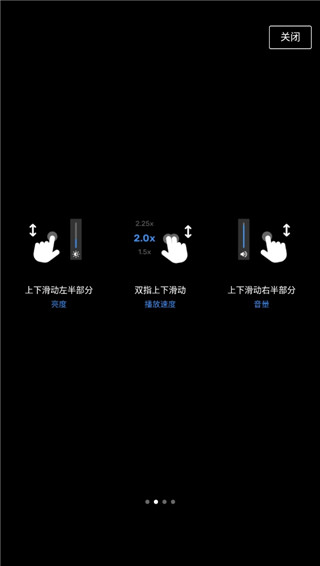 2、上下滑动左边屏幕可以调节亮度,滑动右边屏幕可以调节音量,滑动屏幕中间可以倍速播放