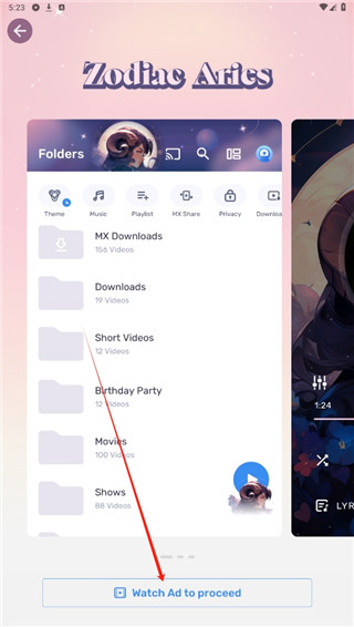 3、在新的界面可以预览主题的效果,点击下方的选项可以通过观看视频免费使用