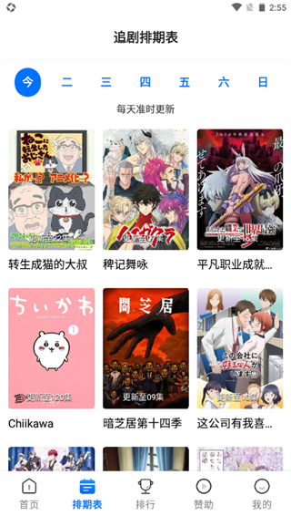 2、这里还有追剧排期表,每个星期更新的动漫剧集都会在这里呈现