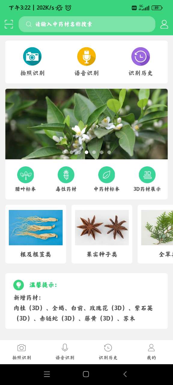 3、支持语音识别方式,除了拍照还能使用语音识别的方式识别中药材;