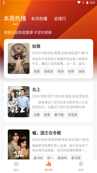 3、这款软件还内置了热播榜单,本周、本月、总排行的所有榜单内容都能看到