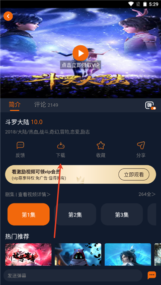 3、点击立即播放后,就能点击下载功能进行缓存了