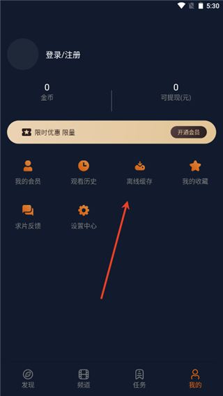 4、个人中心中还可以点击离线缓存来查看视频的下载列表