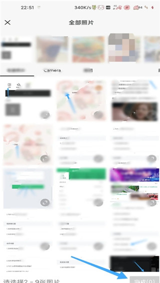 2、进入到手机的相册中,选择你需要拼图的图片,点击下方的完成