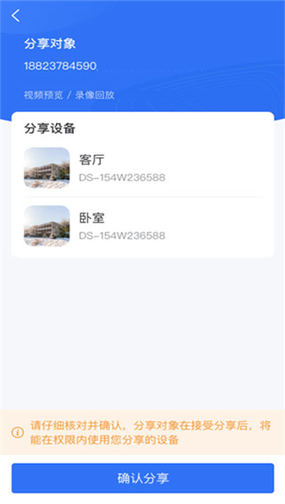 3、设备挑选完后,确认好信息正确后,点击确认分享即可