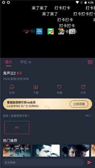 4、缓存好之后,无网络也能在线观看,还能发送各种弹幕哦