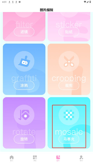1、打开下载好的app,点击下方的菜单栏中的图片选项