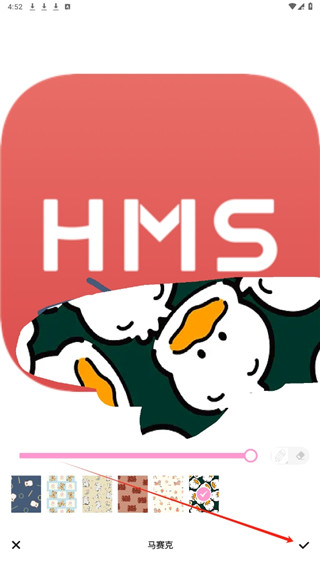 4、最后选择马赛克的样式,滑动屏幕手动添加马赛克,完成后点击√号