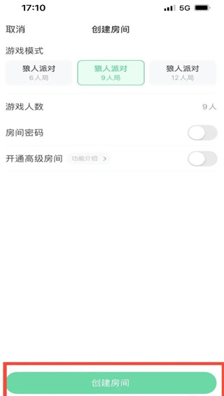 3、设置豪游戏的模式、房间密码后点击创建房间选项