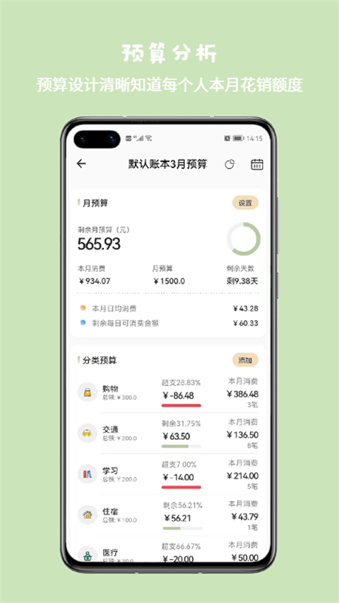 可以为自己设定每月或每周的预算,软件会在接近或超出预算时自动提醒,帮助你有效控制开支。
