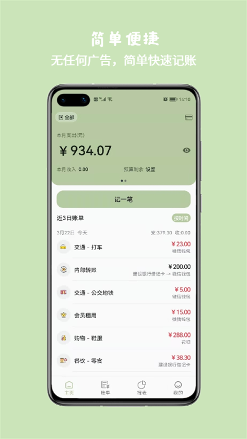 小青账app是一款简洁轻量的记账软件,该应用的体积非常小巧,不会占用多少手机的存储空间,用户每次消费之后都可以在这里面进行记账,每一笔的支出和收入明细可以说是一目了然,可以记录的类型也是非常丰富,餐饮、购物、通讯、旅游、医疗、住宿、加油、学习等,这样账单能记录的更加清楚,而且这里面还提供了清晰的报表统计,月支出、月收入等数据会以图表的方式展示。