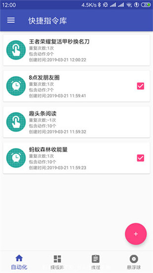 1、将复杂的动作组合,然后一键触发(蚂蚁森林收能量等)