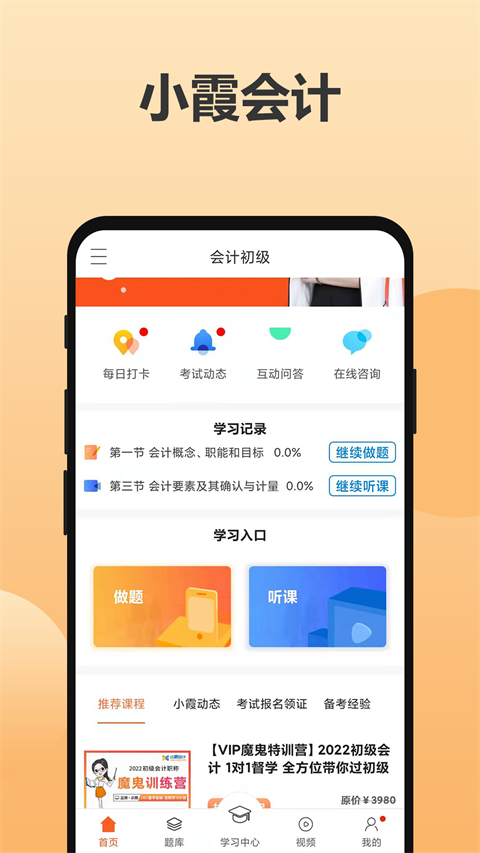 小霞会计app是一款大家都在用的在线学习平台,为在线学生、在职人员提供了各种职业考试,税务师、会计职称、注册会计师等等,大家可以根据需求进行选择,而且这里面有着海量的题库,用户可以在这里提升自己的知识储备,对于基础点薄弱的小伙伴,还能报名各种优质的网络课程,帮助大家轻松完成职业/职称考试,有需求的小伙伴千万别错过了。