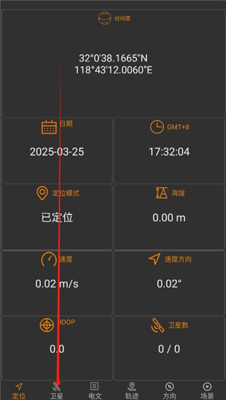 1、在软件的定位板块中,可以看到当天的日期,你所在位置的经纬度等信息