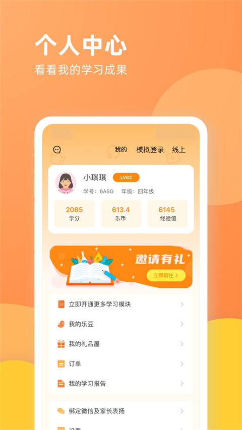 该模块包括我的资料、我的学分、我的乐币、我的经验值、我的收藏等功能。经验值越多,等级越高。小提示:遇到问题时在这里还可以找到客服电话,联系我们专业的服务老师解决!