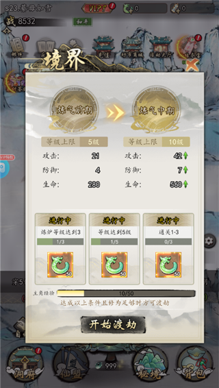 5、尽情领略修仙的无穷魅力,通过不懈努力提升境界等级与战斗力,逐步解锁并享受更多丰富多彩的玩法内容。