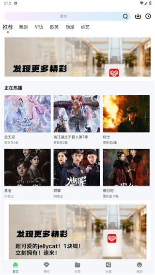 1、软件的首页板块中,有当前热播的新剧,还有许多好看的热门剧