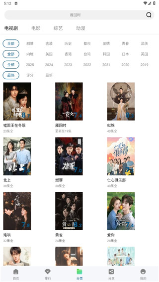 3、软件的分类中,有详细的分类,如剧情、国家、时间等