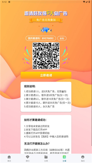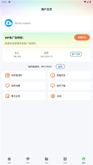 4、软件的分享板块中,要求好友可以获得免费观看时长