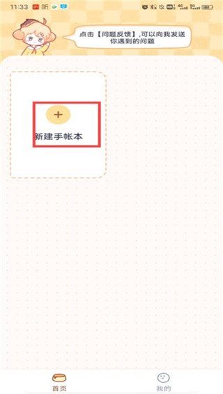 1、在本站下载安装并打开布丁手帐app,进入软件后点击创建手账。