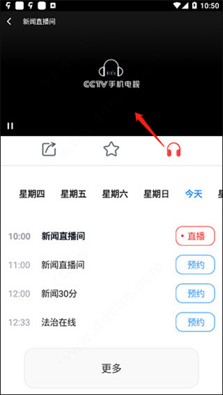 2、点击“更多”即可看到全部的正在直播的央视频道;
