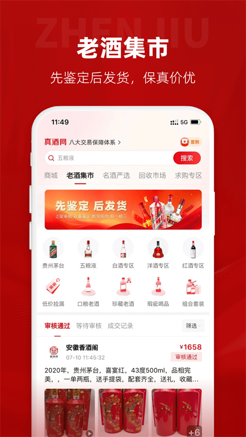 真酒网app是一款由深圳真酒网电子商务有限公司打造的名酒交易软件,在这里包含了各种各样名贵的酒,像大家熟知的茅台在其中也是比比皆是,而且各个年份的都有,能够满足你的购买需求!同时这款软件中所有的酒都是经过了专业鉴酒师品鉴过得,每一种酒都能查的清来路,并且其深受的数字防伪和物理防伪也是提供了双重保证,假一赔三,让你买的放心!此外这款真酒网app还有着福利众多的新人专区,专为新人用户打造,让你可以独享569元红包福利,天天抽飞天茅台,还在等什么,有想要购酒鉴酒的小伙伴不妨来本站下载一试吧!