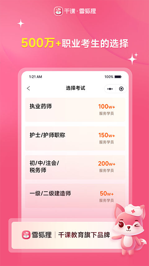 雪狐狸app是一款专为护理专业人员打造的学习辅导软件,拥有着非常齐全的护理课程资源让你学习,在这里你可以跟随全国各大名师的步伐,去认真学习有关于护理考试的每一个关键点,通过练习大量的题库来为接下来的考试做足准备!同时该应用提供了从入门到掌握,从学习到交流,雪狐狸涵盖护士资格考试、初级护师、主管护师、医学高级考试的重难点,让你能够全方位学习到护理知识!此外这款雪狐狸app还有着诸多实用的考试资讯信息,能够帮助用户更为清楚了解考试流程,减轻负担,以更自信的心态去迎接考试!对此有需要的用户可以前来本站进行下载哦!