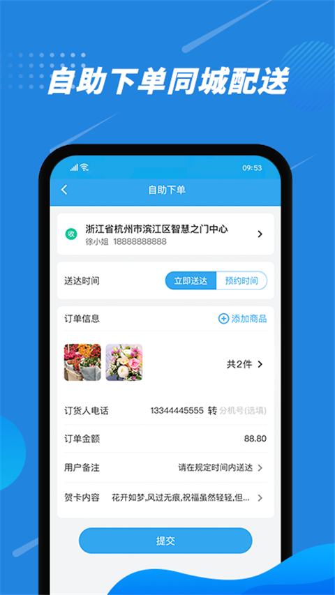 花集通app是一款由浙江花易科技股份有限公司打造的物流配送软件,专门为花店所打造的一站式物流管理平台,在这里提供了非常全面的配送服务,从花朵的制作生产到配送履约,从财务统计到客户营销,这款软件都能帮你大忙,让你享受更为方便快捷的经营配送服务!此外这款花集通app连接于美团、饿了么等三方平台订单数据,客源之多,遍布全国,你可以线上就能实现自动接单,不断提升自己店铺的营业额和接单效率,让自己的花能够大卖!有需要的小伙伴快来下载试试吧!
