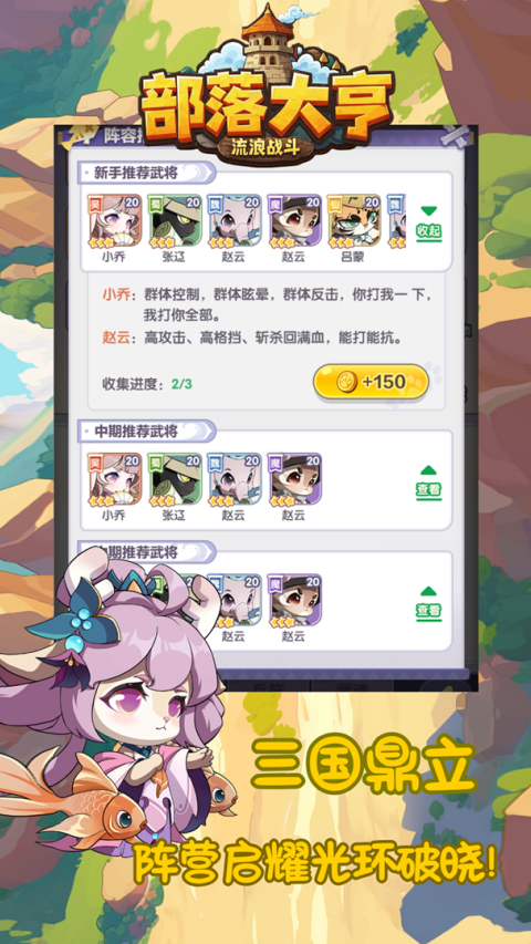 部落大亨2025最新版是一款2D卡通风格的三国塔防策略游戏,融合了当下非常热门的卡牌收集与放置挂机玩法元素,让玩家们既能够享受游戏的轻松乐趣,同时也不会被游戏中的诸多任务所束缚,简简单单完成些活动就能获得海量资源,不肝不氪,适合不同职业不同年龄段的玩家!不仅如此这款游戏中根据阵营还分为了魏蜀吴三方,就好比真实三国一般,不同阵营的阵容有着不一样的效果,如蜀国阵容可提升暴击率,吴国强化资源收益,魏国增强防御能力。玩家需根据关卡特性灵活调整阵容,甚至通过跨阵营混搭激活隐藏效果,对此感兴趣的小伙伴快来下载尽情体验吧!