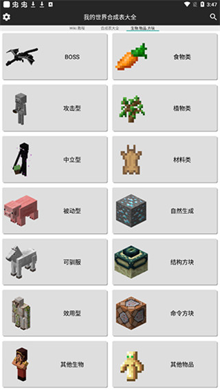 1、首先下载好本站带来的我的世界合成表大全,进入首页大家就可以看见很多超详细的合成表类目,玩家可以根据自己的需求来查看攻略。