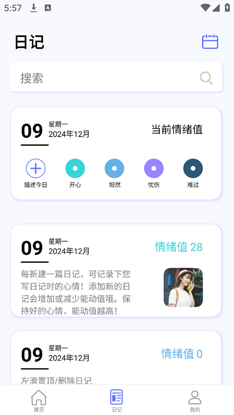 无忧日记app是一款非常好用且轻便小巧的日记记录软件,能够让用户将每天的日常生活或者心情状态记录下来,在这里你不仅能够选择相对应的标签,记录下今天发生的事情、天气等等,并且使用各种个性化的设置工具来让你的日记更加与众不同!不仅如此这款日记app还会根据你的使用记录生成相对于的周报表,让你查看自己这一周的心情状态究竟如何,从而更好调节心态,避免相关心理疾病的发生!此外这款无忧日记app操作使用也是非常简单,想写写东西的时候就能打开它,而且系统也会根据你当时的心情生成情绪值,帮助你更清晰地了解自己!对此有需要的话快来本站下载吧!